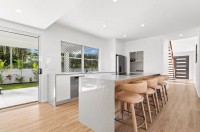 Flooded with natural light through expansive windows and sliding doors, the open-plan living and dining areas are enhanced by chic coastal furnishings and a calm, contemporary palette. The sleek, fully equipped kitchen features a breakfast bar and butler’s pantry, making it ideal for both casual family meals and entertaining.
