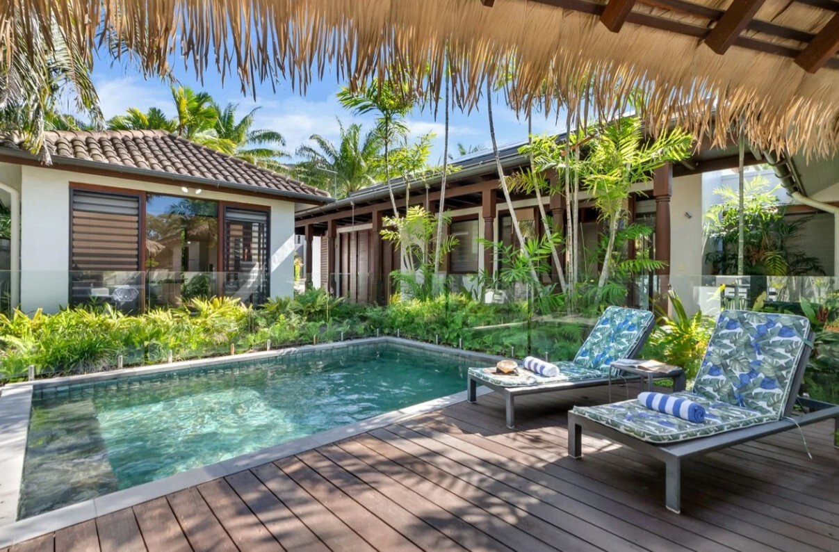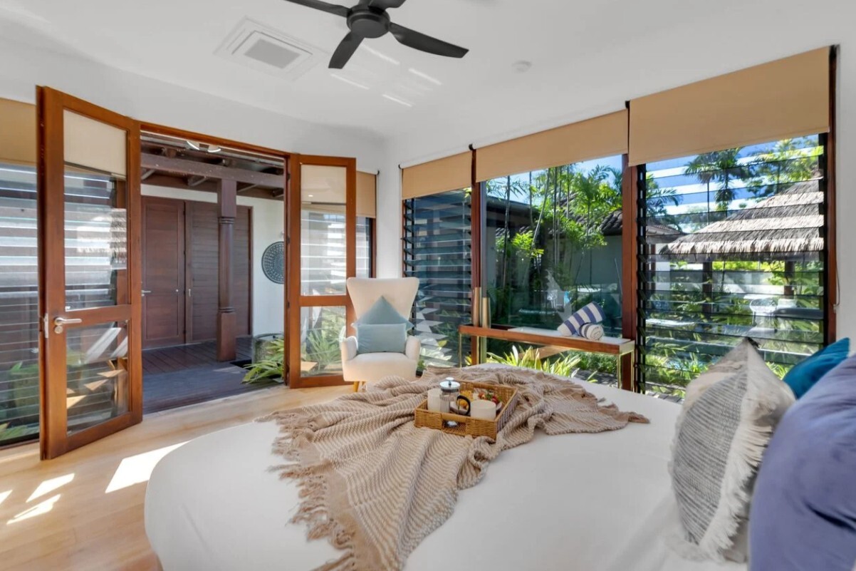 Surrounded by lush tropical gardens this luxury Balinese-inspired villa offers premium Palm Cove accommodation with complete privacy and resort-style living. Featuring a private pool, central courtyard, elegant pavilions, and seamless indoor-outdoor spaces, this beautifully designed holiday house is ideal for couples and families seeking a tranquil, high-end Palm Cove escape, close to Palm Cove beach.