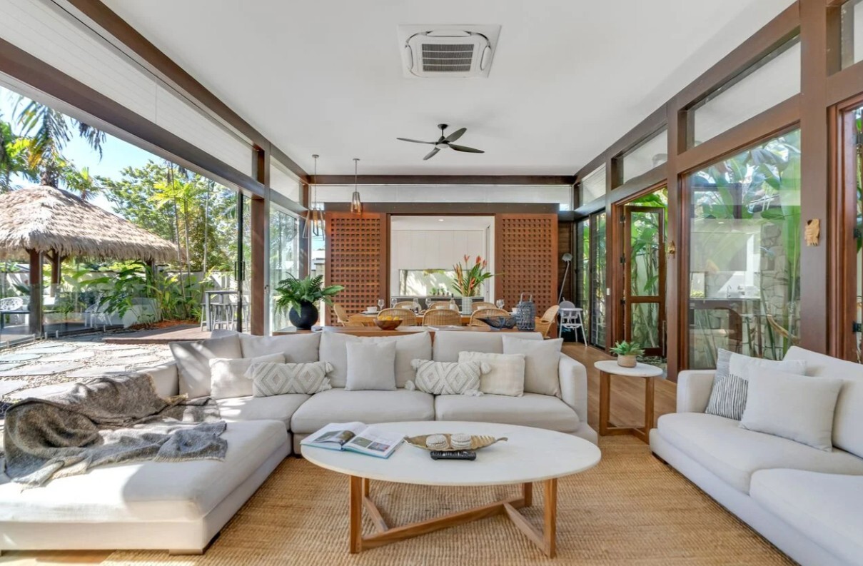 Set within lush tropical gardens and backing onto tranquil native bushland, this stunning Balinese-inspired villa offers premium Palm Cove accommodation for guests seeking privacy, comfort, and refined resort-style living. Architecturally designed and thoughtfully laid out, this luxury Palm Cove holiday home wraps around a central courtyard featuring a sun deck, thatched poolside cabana, and private swimming pool, creating a peaceful sanctuary just moments from Palm Cove beach.