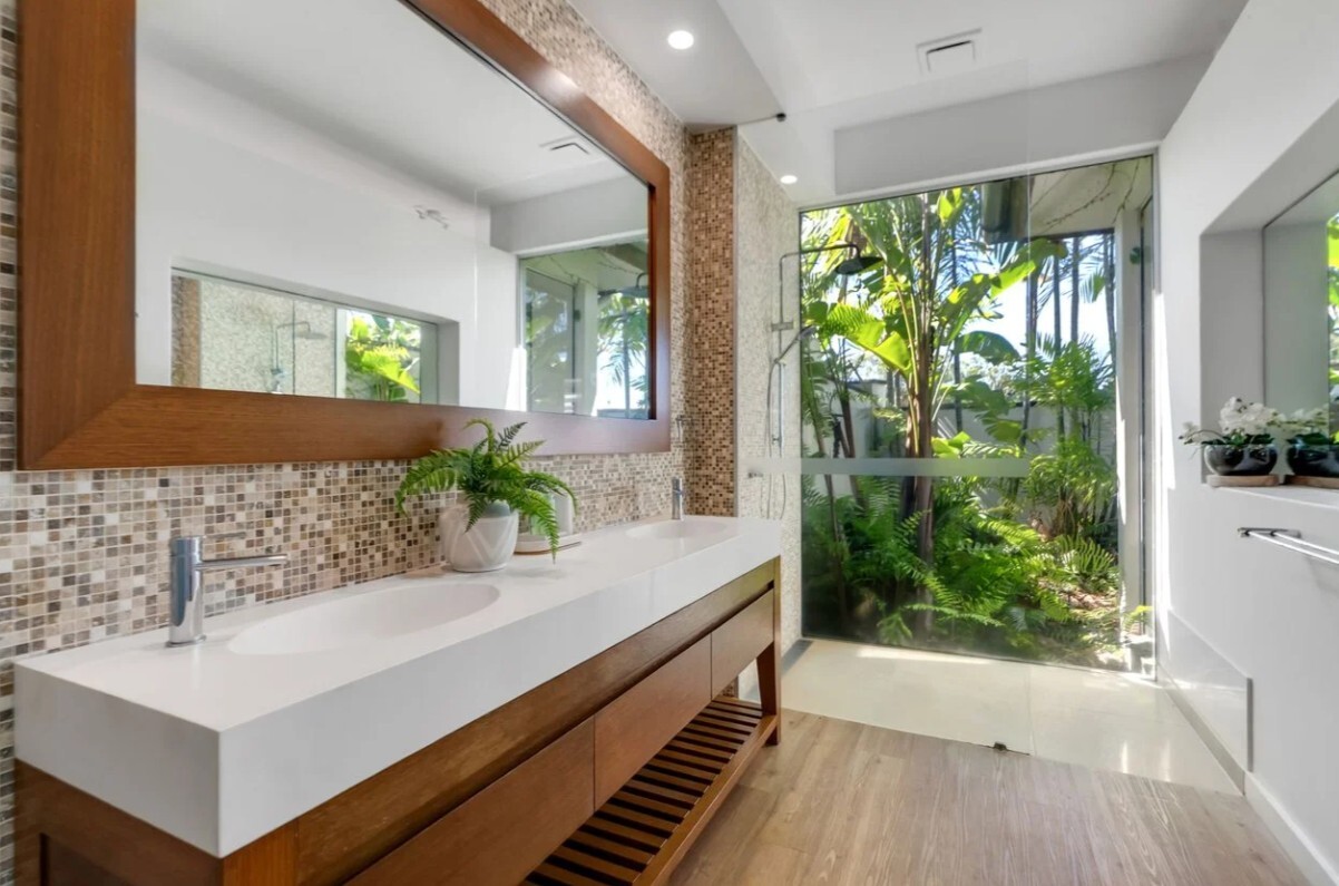 Bedrooms - Accommodation is arranged across separate pavilions for enhanced privacy, making this an ideal Palm Cove holiday house for families and couples. The spacious master suite features a King bed and private ensuite, complemented by two additional bedrooms and beautifully appointed bathrooms. Three luxury bathrooms, including two ensuites, are finished with premium fixtures, with one featuring a freestanding bath set within private tropical surrounds.